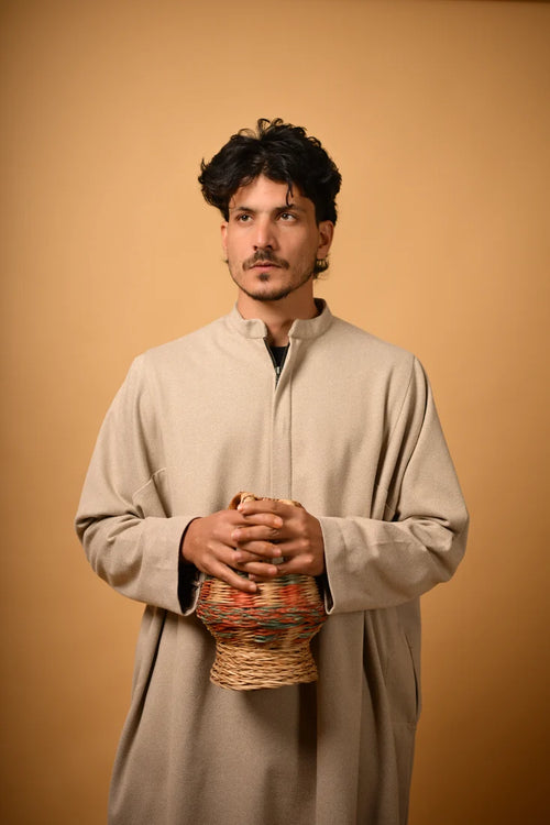 Warm Beige with Brown Pinstripes Woollen Waistcoat -