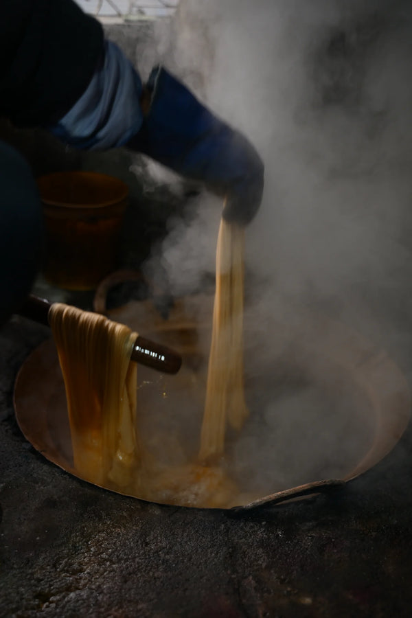 The raw fibre is carefully hand-spun into delicate yarn, preserving its strength, warmth, and luxurious lightness.