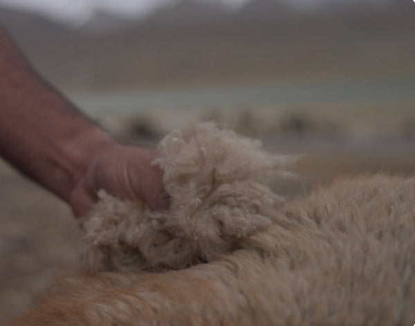 Ultra-fine cashmere fibre is gently combed from Changthang goats during their natural molting season, ensuring purity, softness, and ethical sourcing.