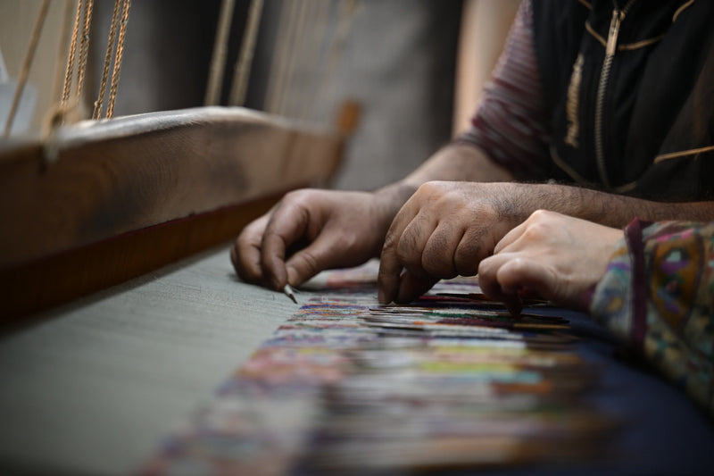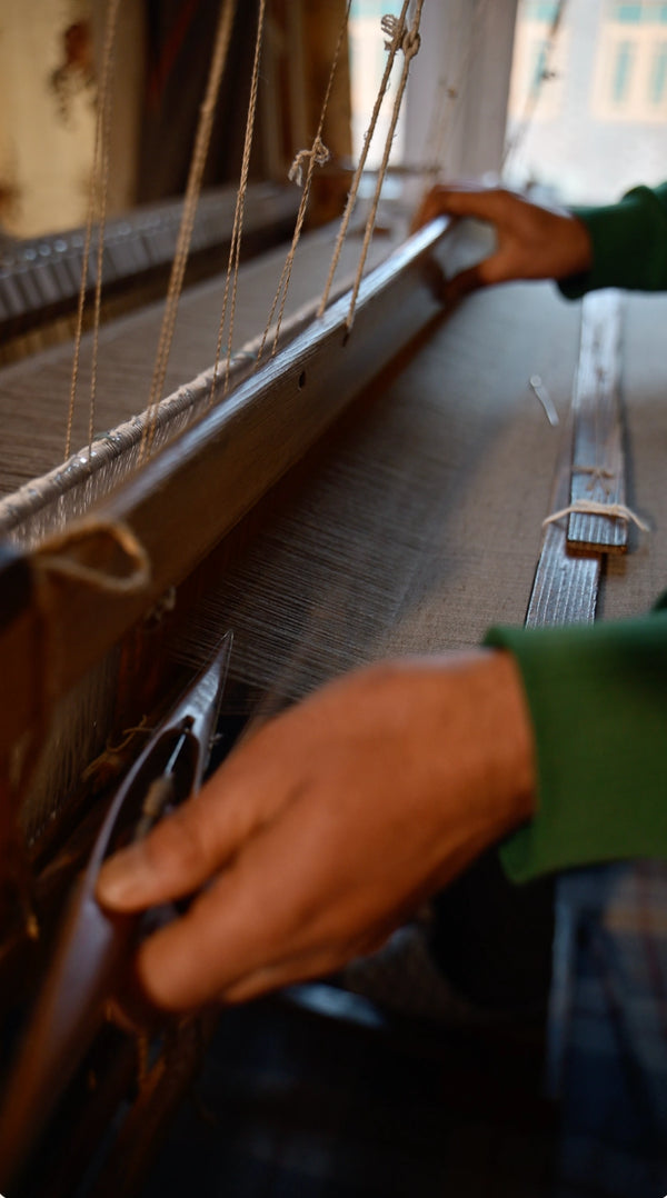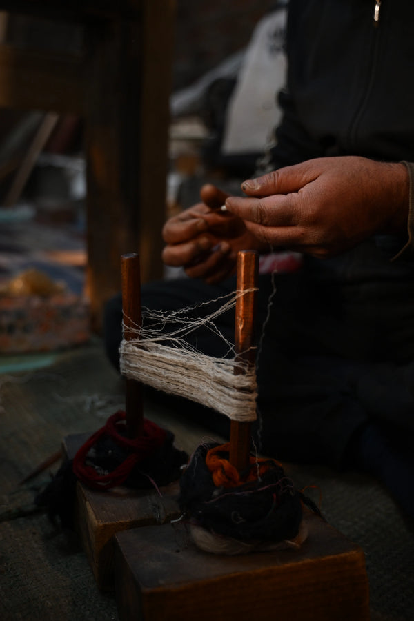 Skilled artisans weave the yarn into shawls on traditional wooden handlooms, a slow process that gives each piece its unique character.