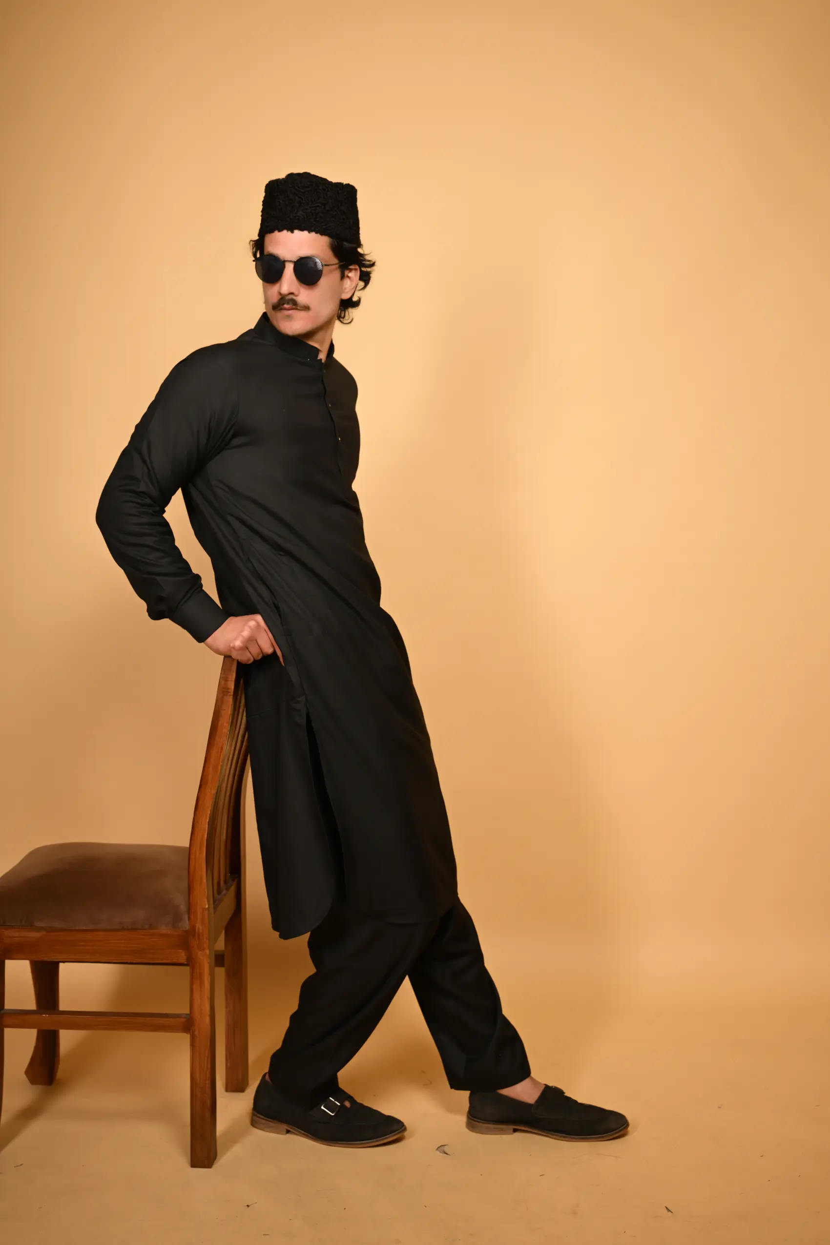 Make a statement this winter with the Pathan Black Kameez Shalwar, where tradition meets modern refinement.