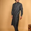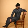 The Pathan Kameez Shalwar in Greyish Blue offers a perfect blend of calm sophistication and modern winter style. This muted, cool-toned shade brings a contemporary touch to the traditional Pathan silhouette, making it ideal for men who prefer subtle elegance over bold contrast.