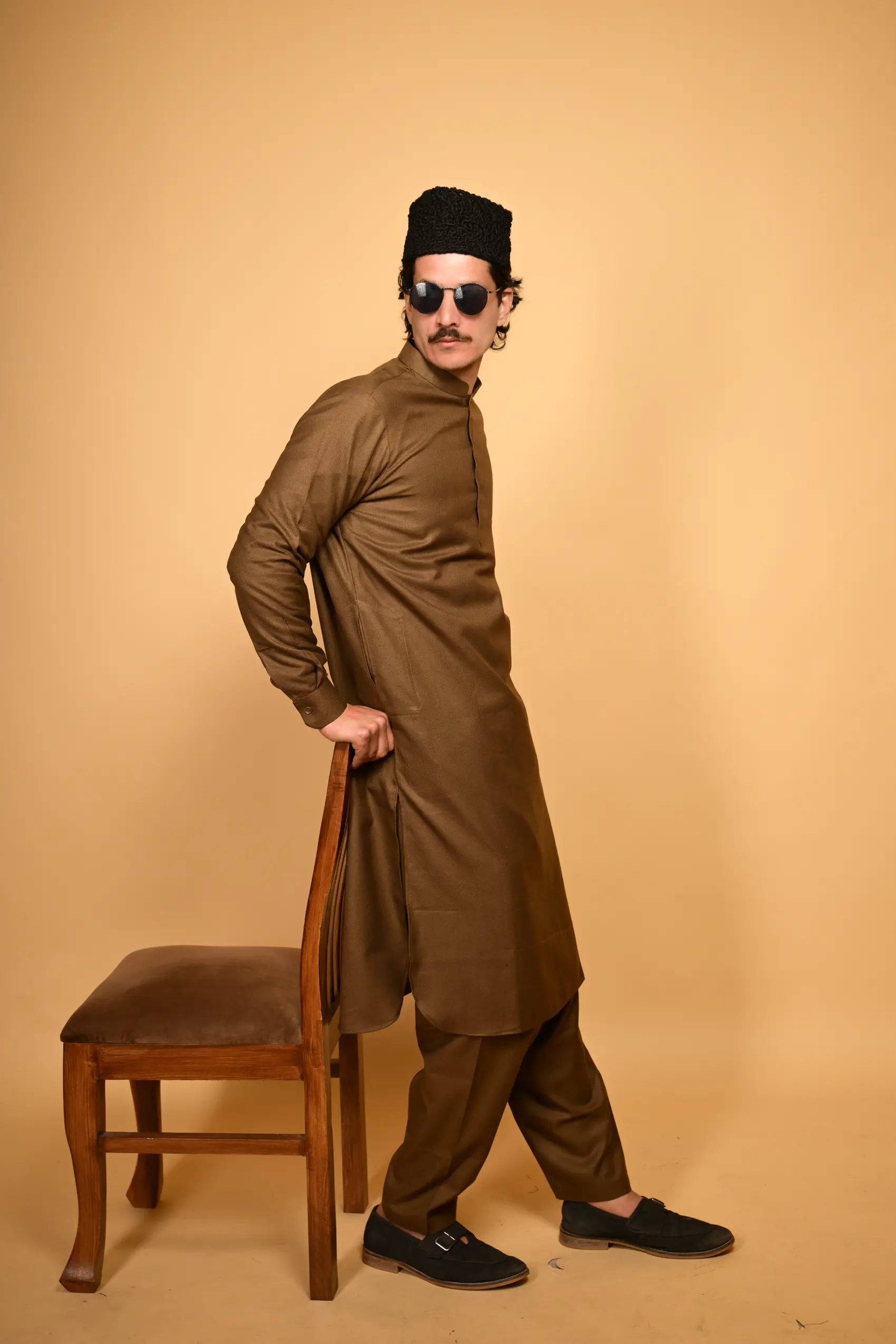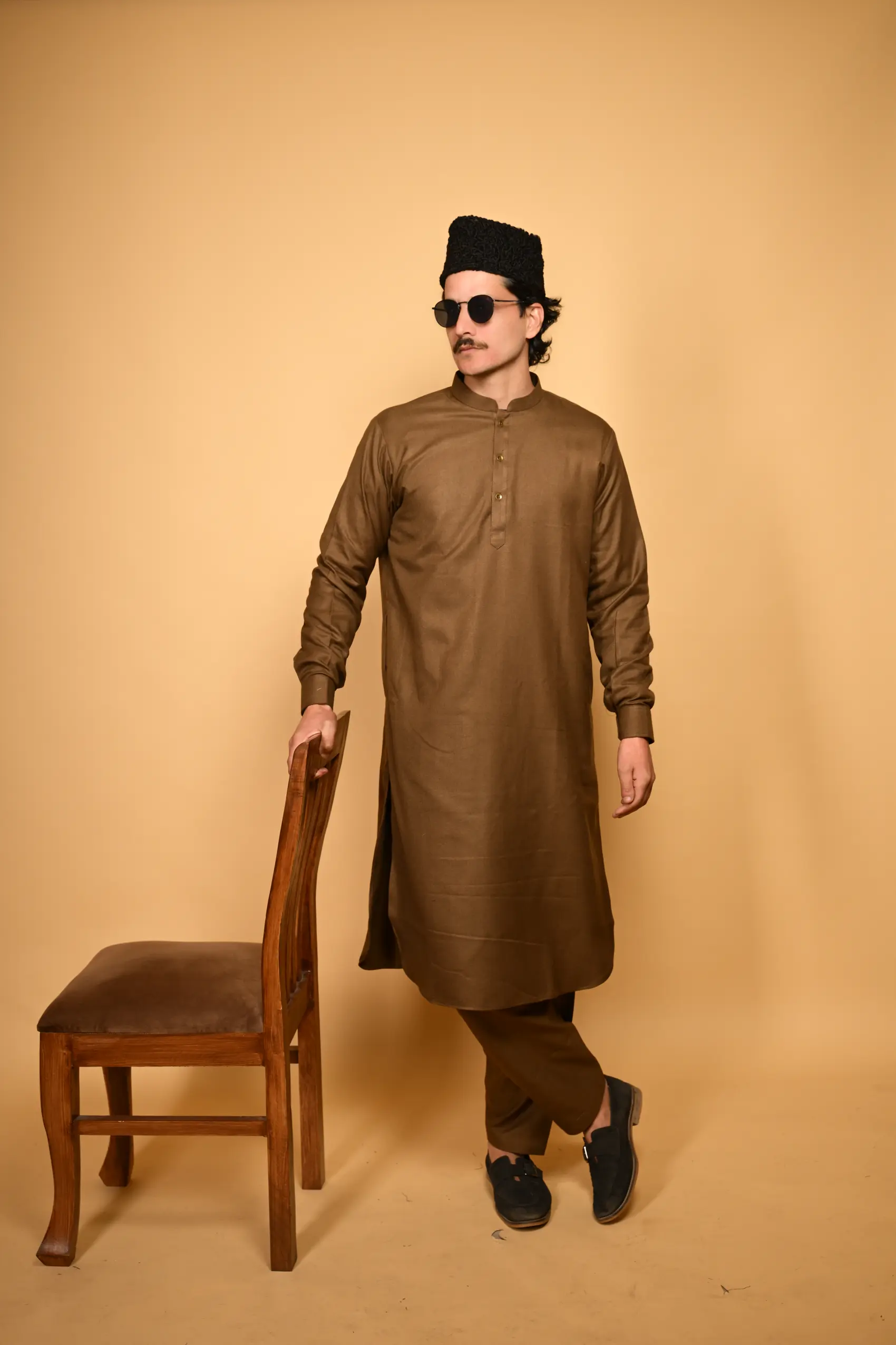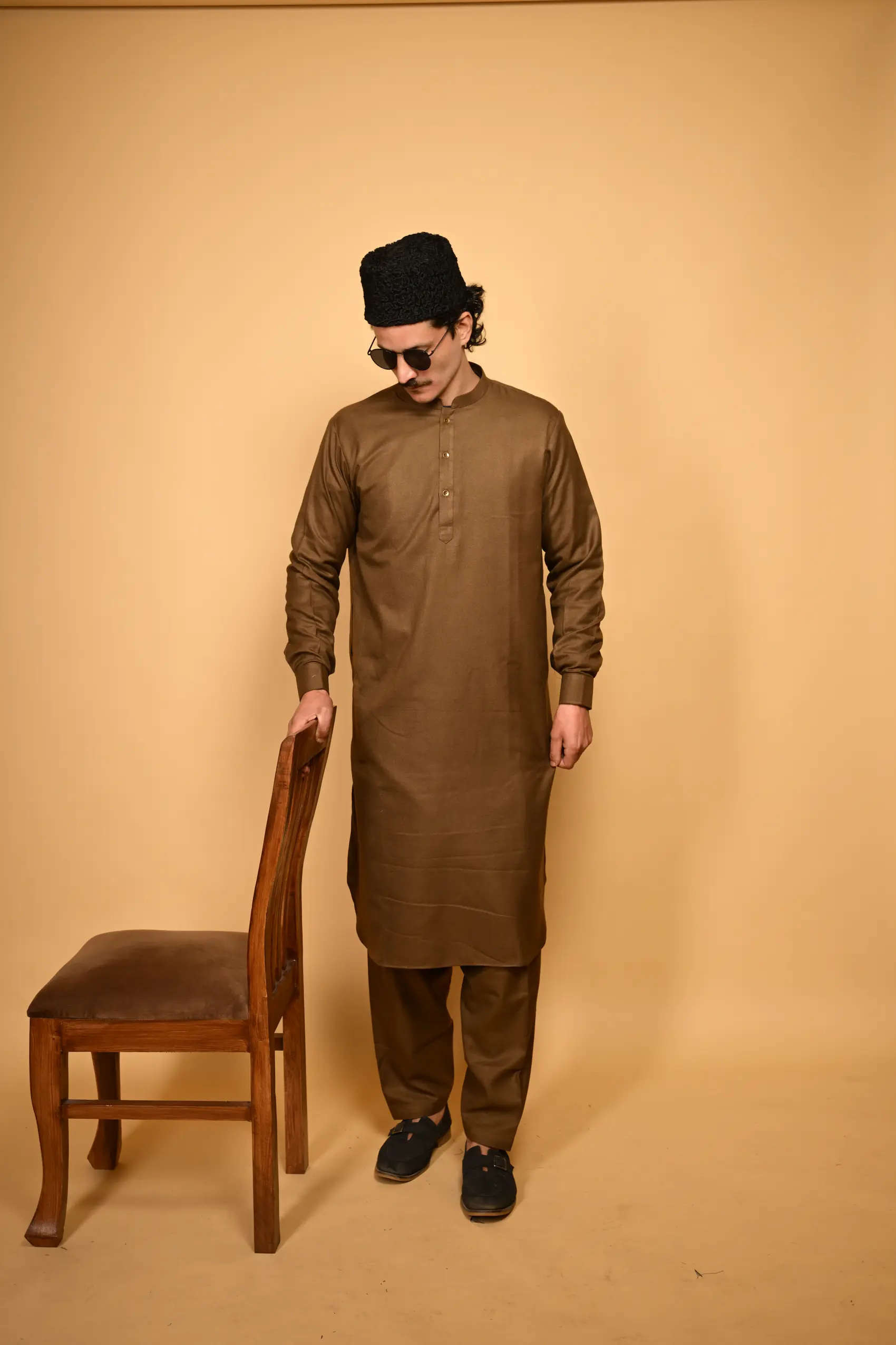 Complete your winter wardrobe with the Pathan Wooden Kameez Shalwar, where comfort, simplicity, and heritage come together.