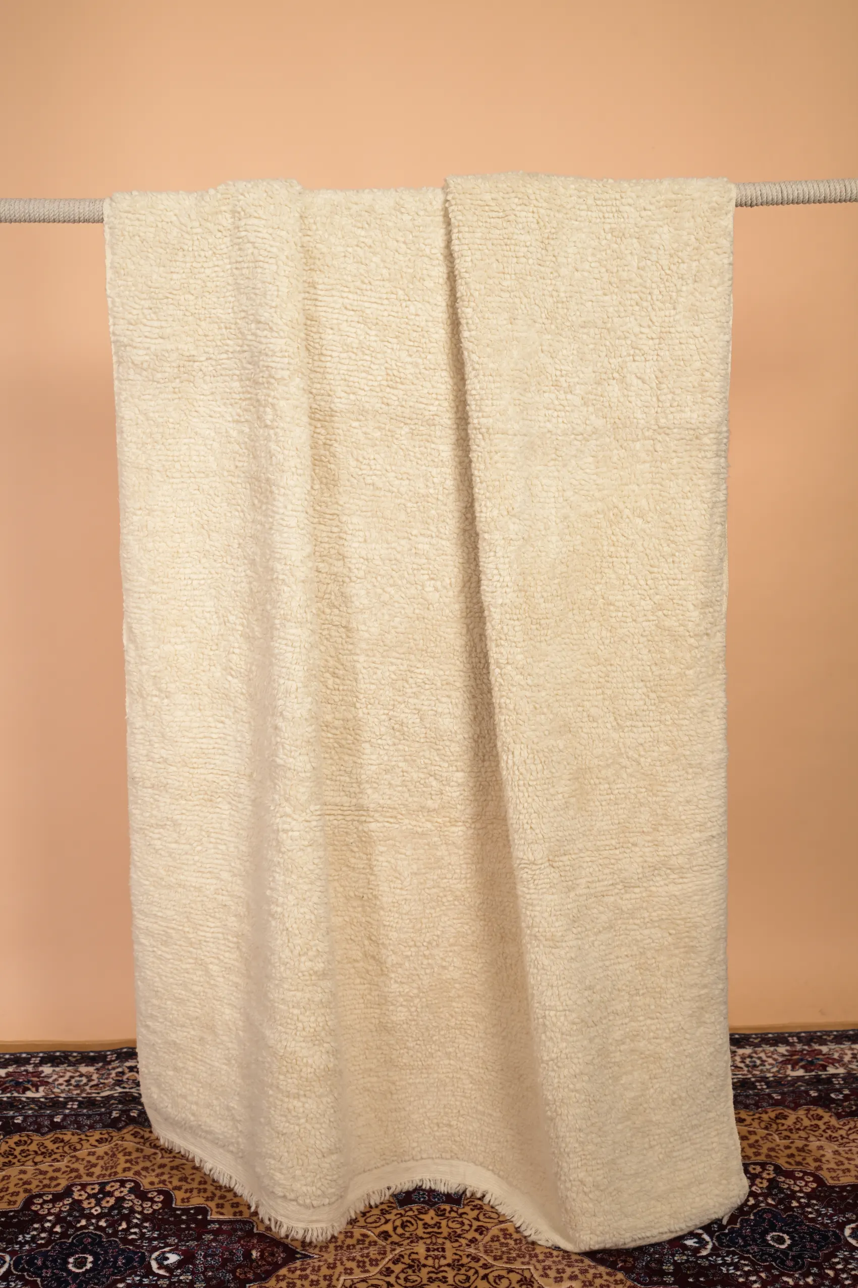 White Furry Handwoven Merino Wool Blanket – 2.5 kg | 2 m × 1 m