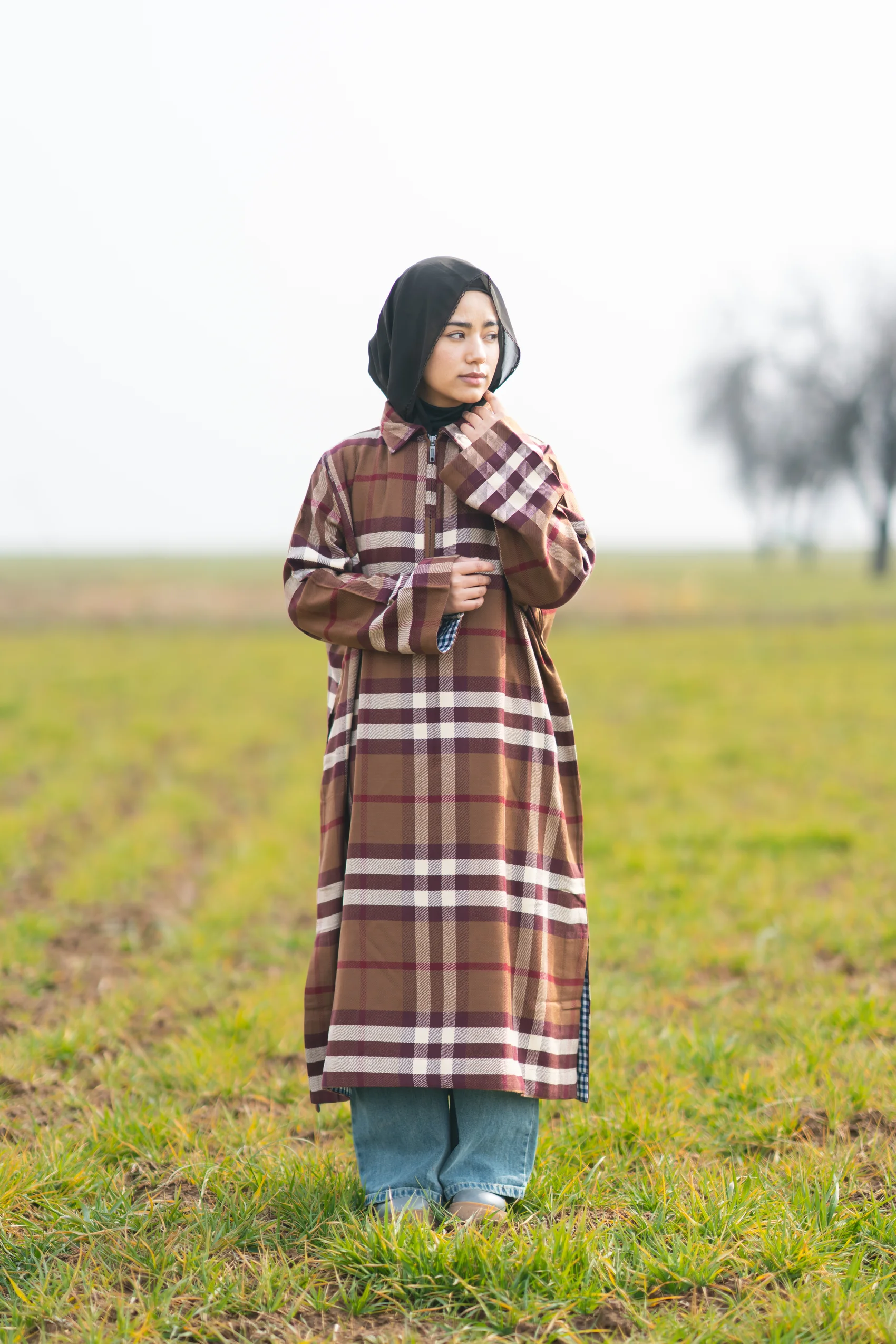 Discover our stylish Kashmiri female pherans crafted from premium acrylic wool for unmatched comfort and warmth. These pherans feature a timeless checkered design with gingham accents adorning the bottom hem, side slits, and sleeve ends, adding a modern twist to a traditional classic. The YKK zippers ensure durability and ease of wear. Designed with a shirt collar, these pherans seamlessly blend contemporary fashion with traditional Kashmiri aesthetics, making them a versatile addition to your winter wardrobe.
